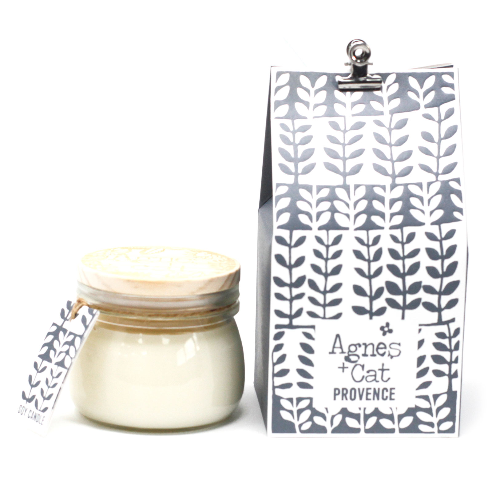 Az új "Agnes and Cat" Szójagyertyák Fa Fedéllel - Provance természetes szójaviaszból készültek, kézi öntéssel, minőségi illatolajok és parfümolajok hozzáadásával. Fedelük fából készült, kedves lézer díszítéssel.