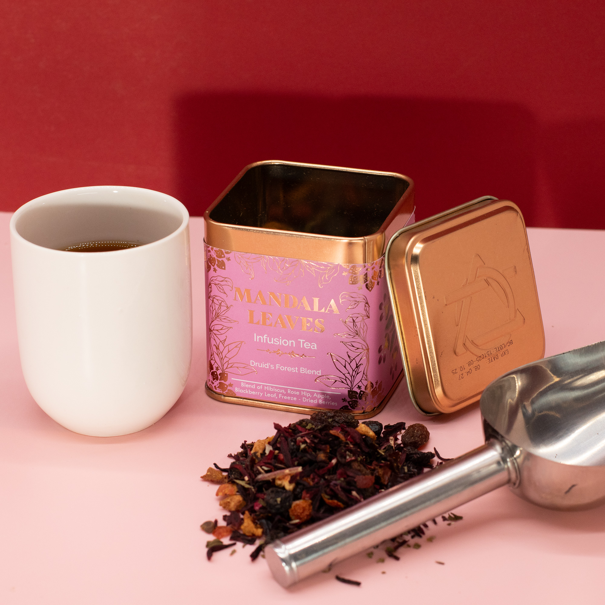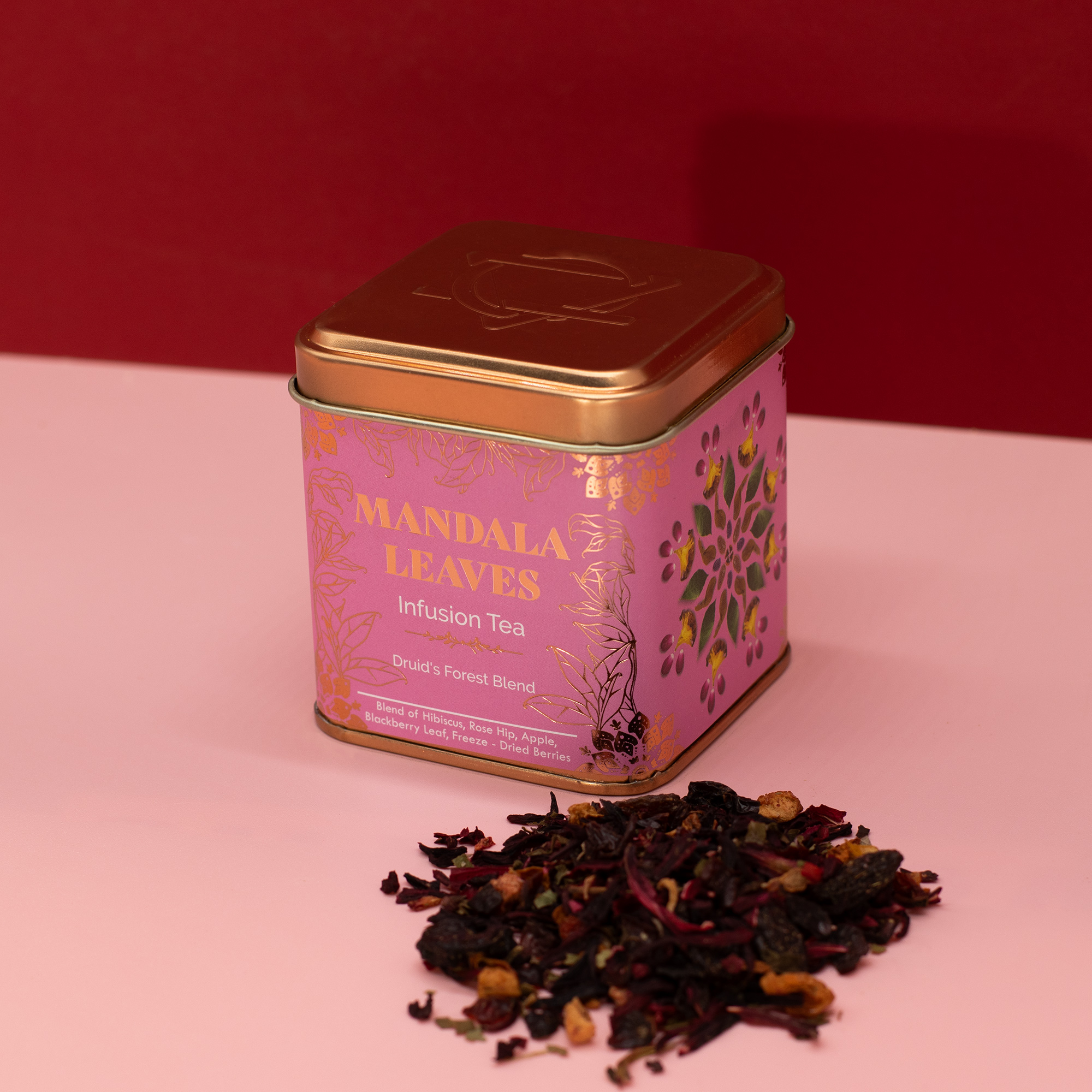 Az erdei keverék hibiszkusz, csipkebogyó, alma, szederlevél és fagyasztva szárított bogyók harmonikus keveréke, amely mély, gyümölcsös főzetet és természetesen gazdag színt ad. A hibiszkuszos és bogyós teák gyakran a gyengéd vitalitással és a természetes felfrissüléssel kapcsolódnak össze, így különösen vonzóak azok számára, akik az ízes, koffeinmentes alternatívákat kedvelik.