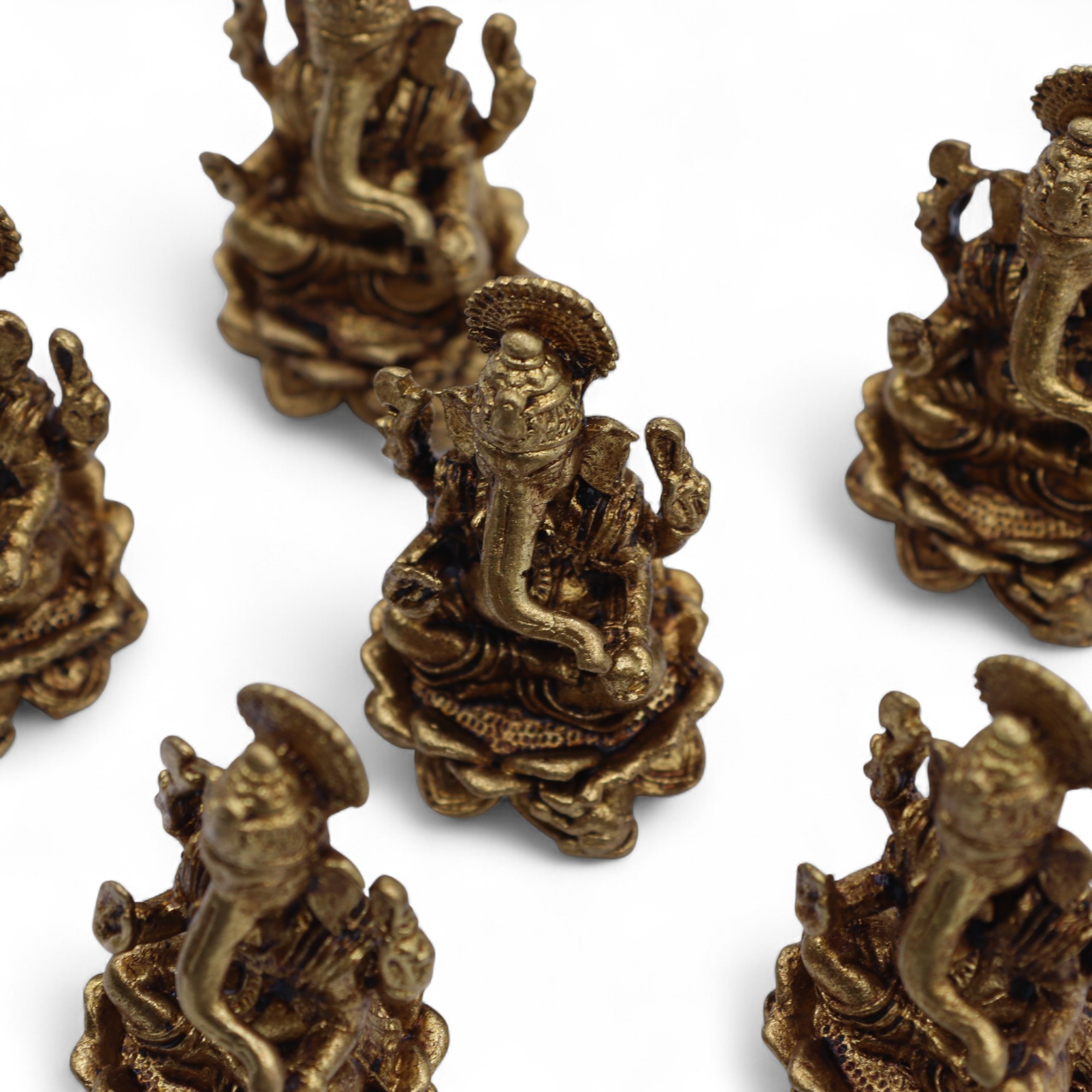 Ez a szett hat darab, sárgarézből készült Ganesha-figurát tartalmaz, amelyek közepes, elhelyezhető dekorációs elemek. A figurák egységes kivitelben készülnek, így harmonikus készletet alkotnak, amely alkalmas kiskereskedelmi kínálat bővítésére vagy tematikus dekorációs összeállítások kiegészítésére.