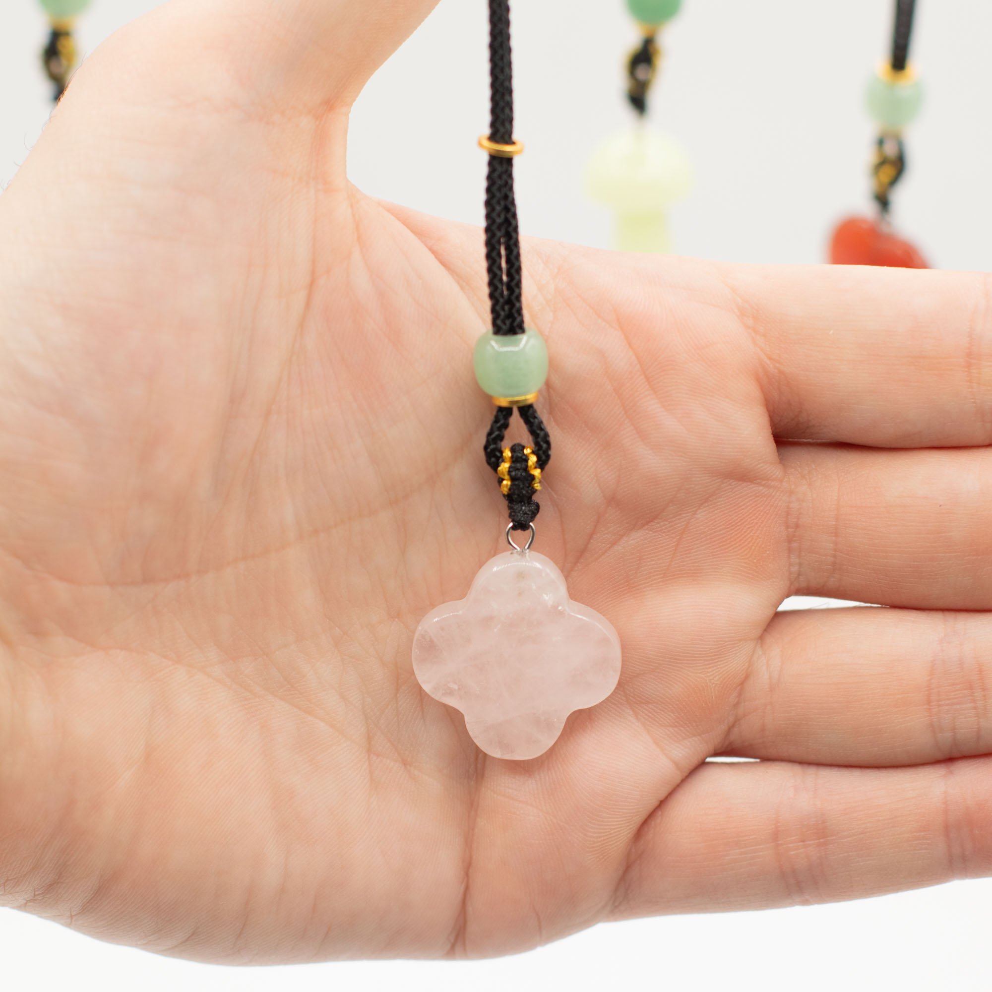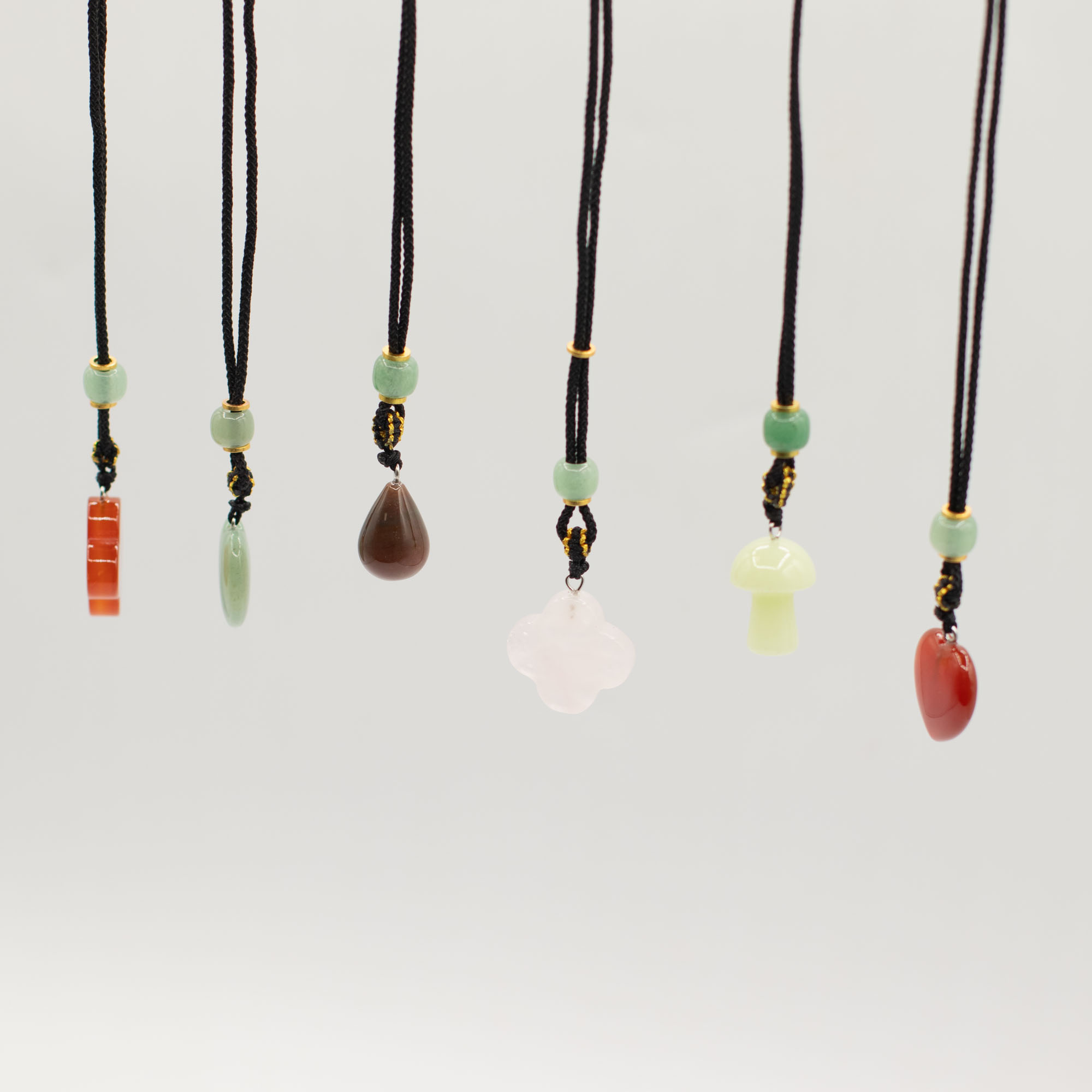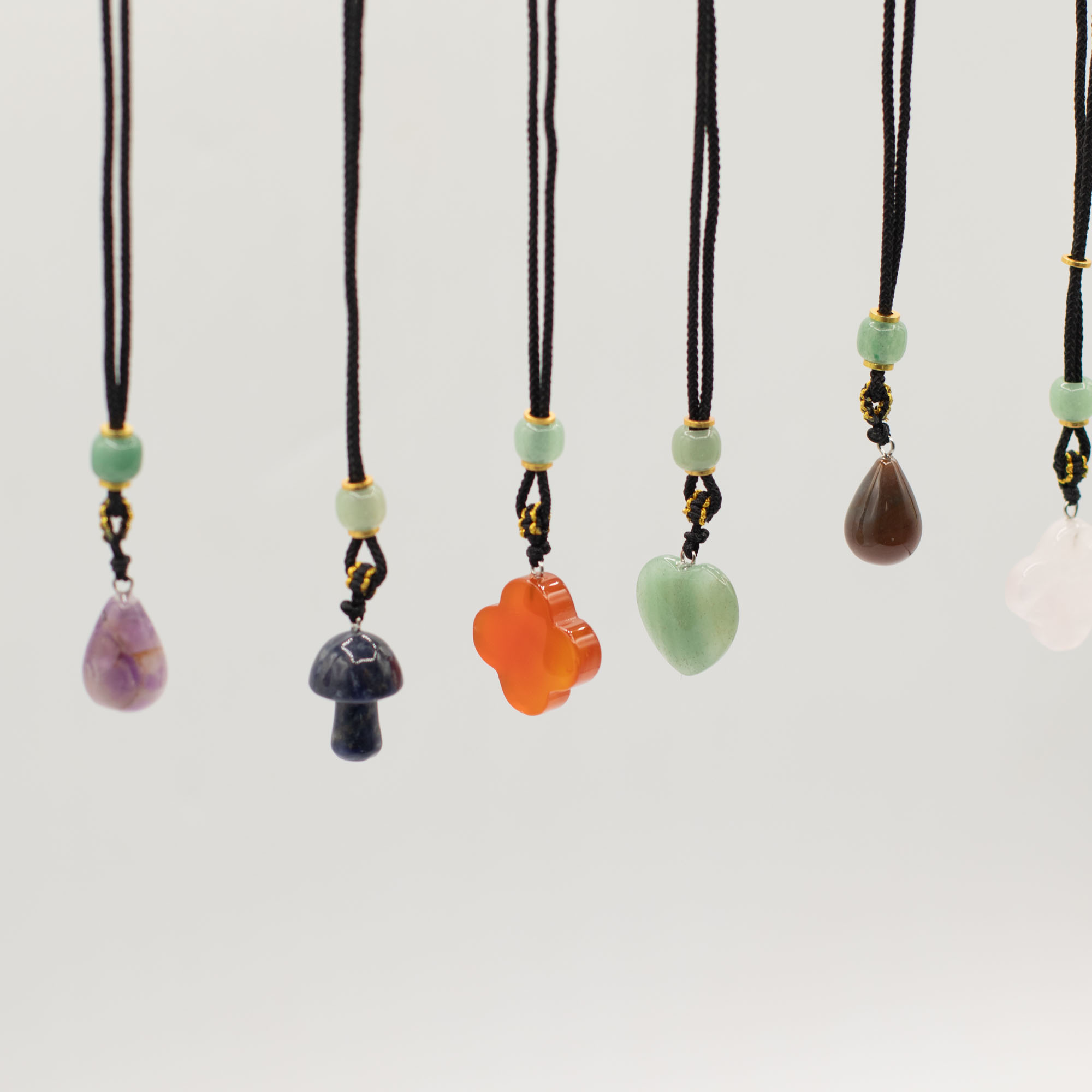 Ez a 8 darabos, vegyes összeállítású zsinóros nyaklánc csomag növényi motívumú ásvány medálokat tartalmaz. A különböző formák és színek változatos, könnyen kombinálható kínálatot biztosítanak.