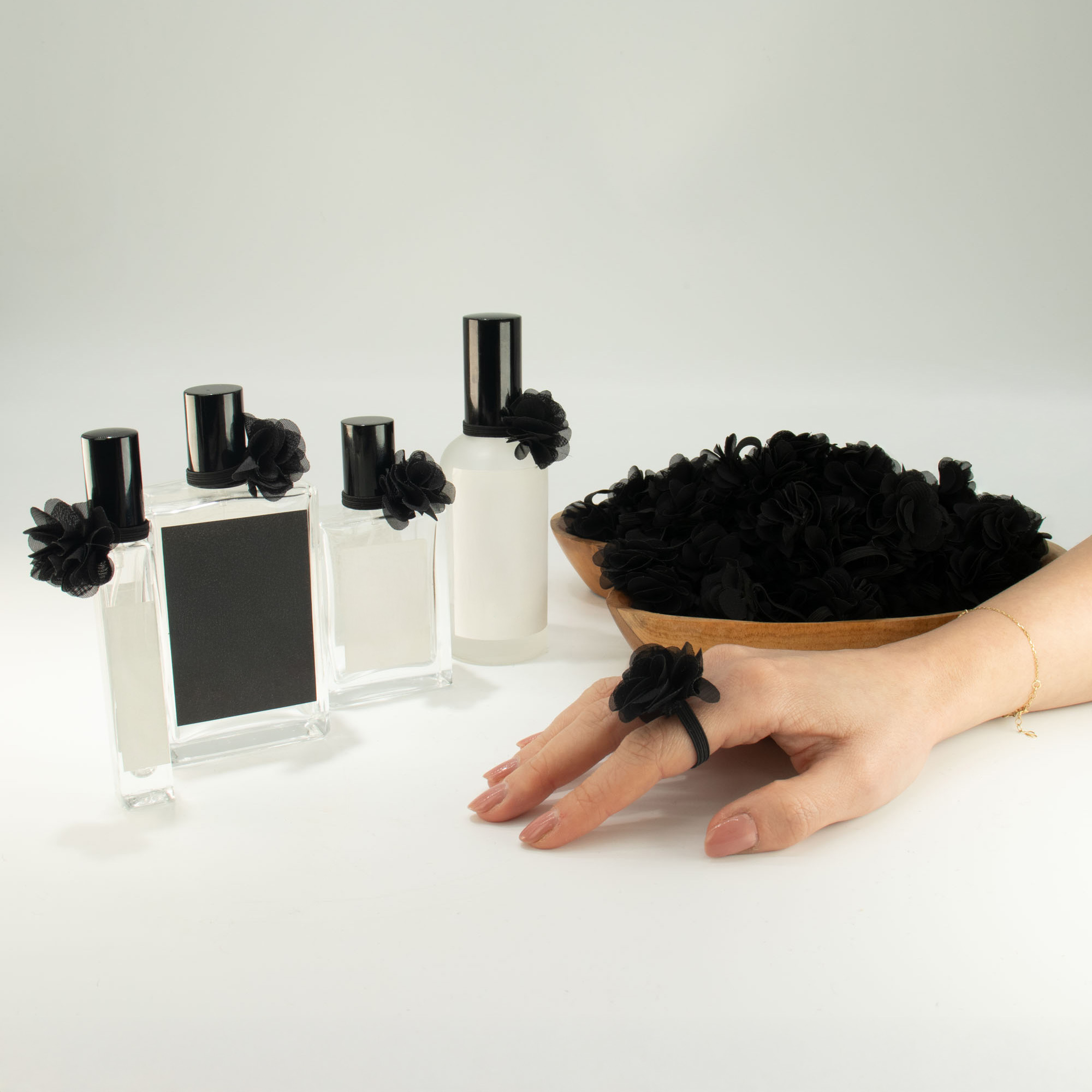 A fekete sifon illatgyűrűk elegáns és prémium megjelenést kínálnak az illatbemutató eszközök között, ideális választást nyújtva parfümériák, ajándéküzletek és lifestyle boltok számára. A mély fekete szín kifinomult, modern hatást kelt, amely különösen jól illeszkedik exkluzív és letisztult termékkínálatokhoz.