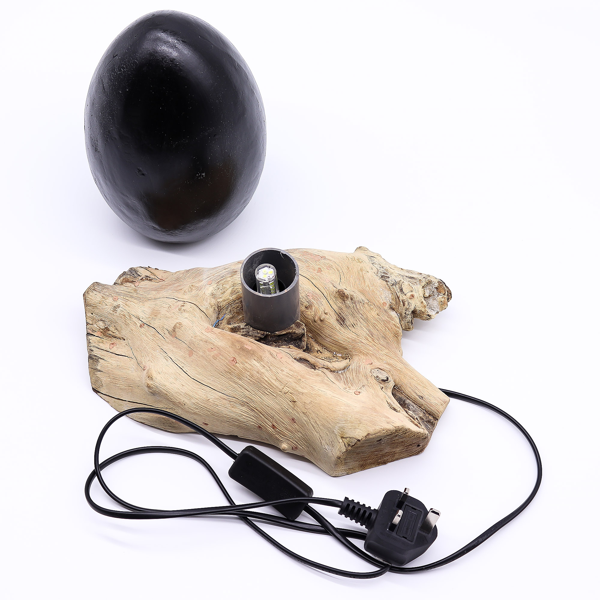 A Drift Glow Szürke Tojás lámpa a természetes uszadékfa egyediségét kombinálja egy sötét, tojás formájú búrával, amely elegáns és modern hangulatot teremt a térben. Az alapot kézzel válogatott uszadékfa alkotja, amely organikus formáival, érdekes erezetével és rusztikus megjelenésével minden darabot megismételhetetlenné tesz. A lágyan ívelt tojásforma harmonikusan illeszkedik a fa természetes tónusaihoz, így a lámpa egyszerre természetközeli és kortárs hatású.