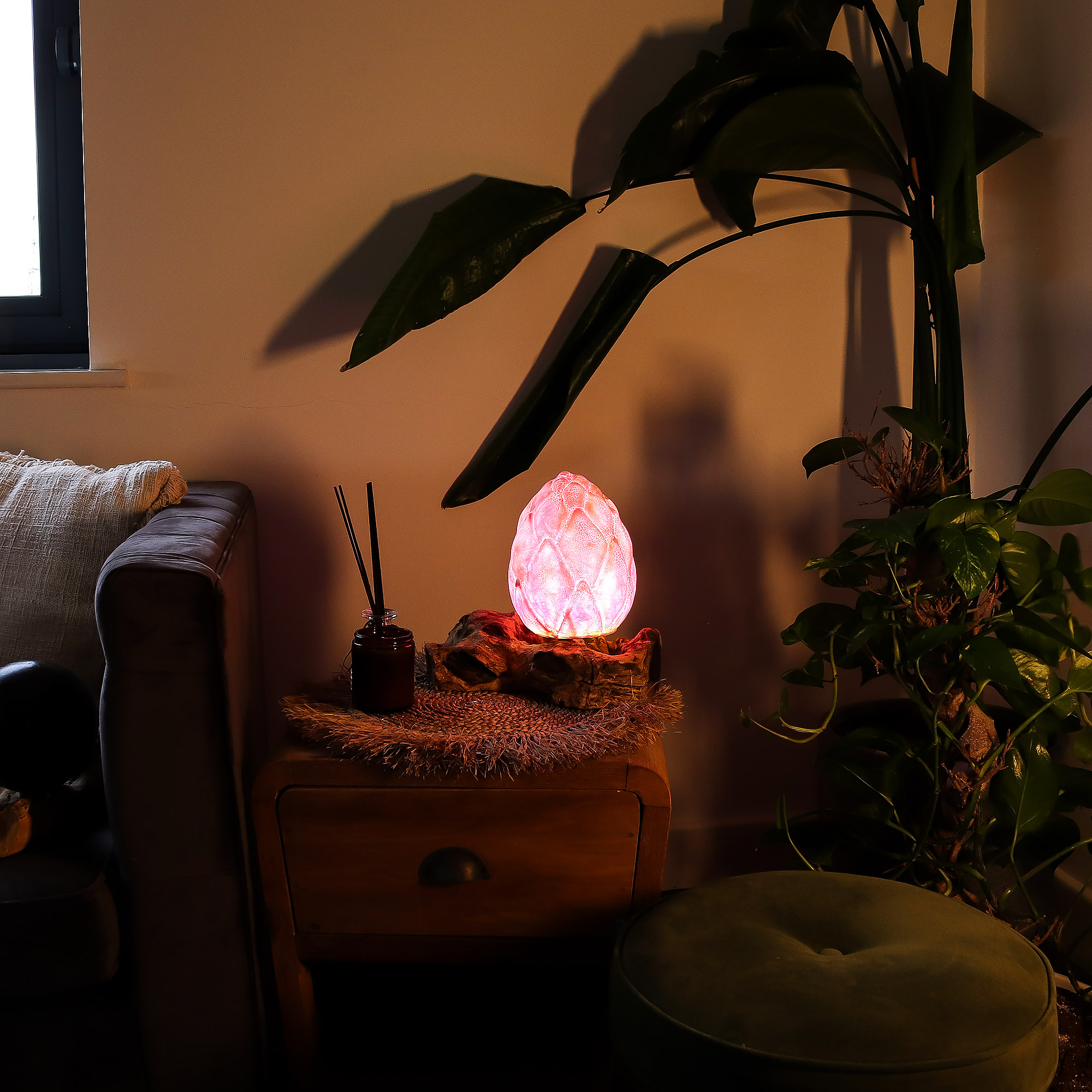 A Drift Glow Rózsaszín Tojás lámpa kiváló választás azoknak, akik szeretnének egyedi, színben is különleges hangulatvilágítást, amely természetes elemekkel és modern kialakítással teszi otthonosabbá a teret.