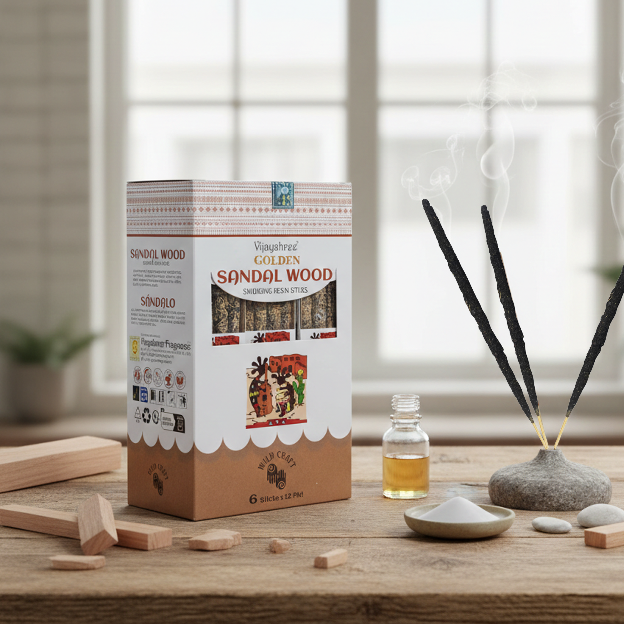 A Golden Szantálfa gyanta füstölő 30 grammos kiszerelésben, 12 darabos csomaggal érhető el. A gyanta alapú füstölő használat közben meleg, fás szantál aromát biztosít, amely hosszan érezhető, karakteres illatot teremt a térben. A letisztult csomagolás megkönnyíti a polcos kihelyezést és az üzleten belüli tájékozódást.