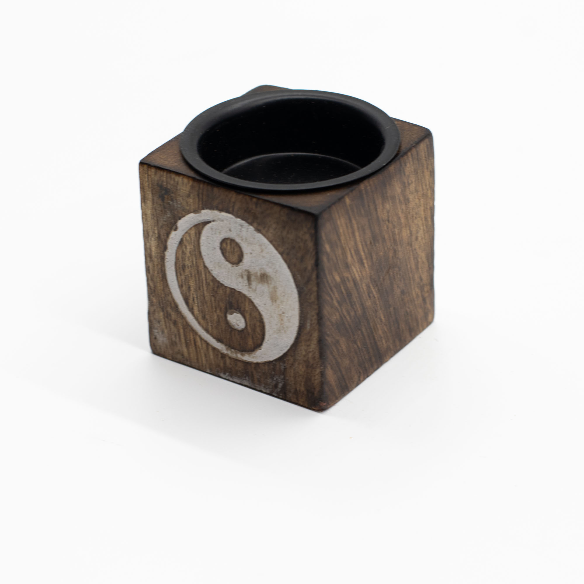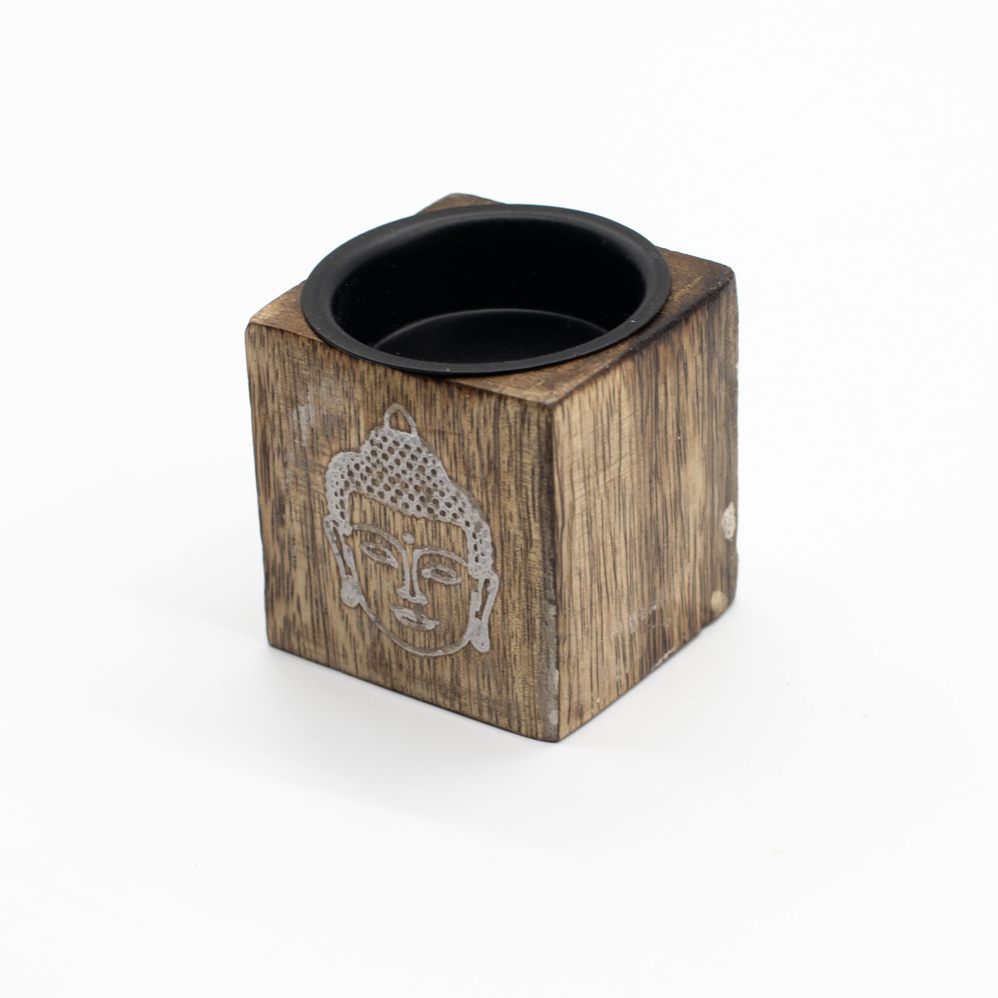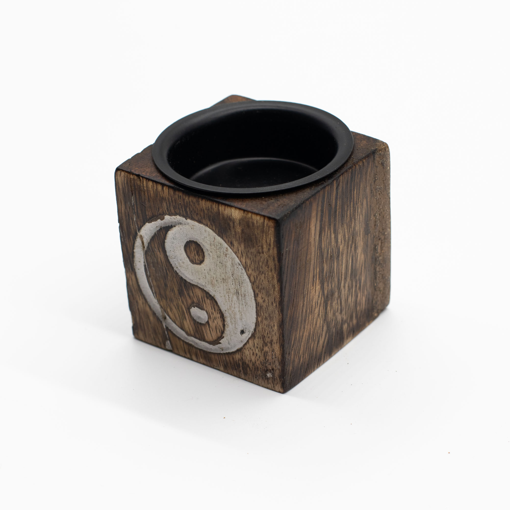 Ez a kocka formájú állvány letisztult, mégis karakteres megjelenésével jól illeszkedik a dekorációs és ajándékjellegű kínálatba. A sötétebb tónusú fa felületet finoman kidolgozott, keleti stílusú minta díszíti, amely egyedi megjelenést biztosít anélkül, hogy túl hangsúlyos lenne.