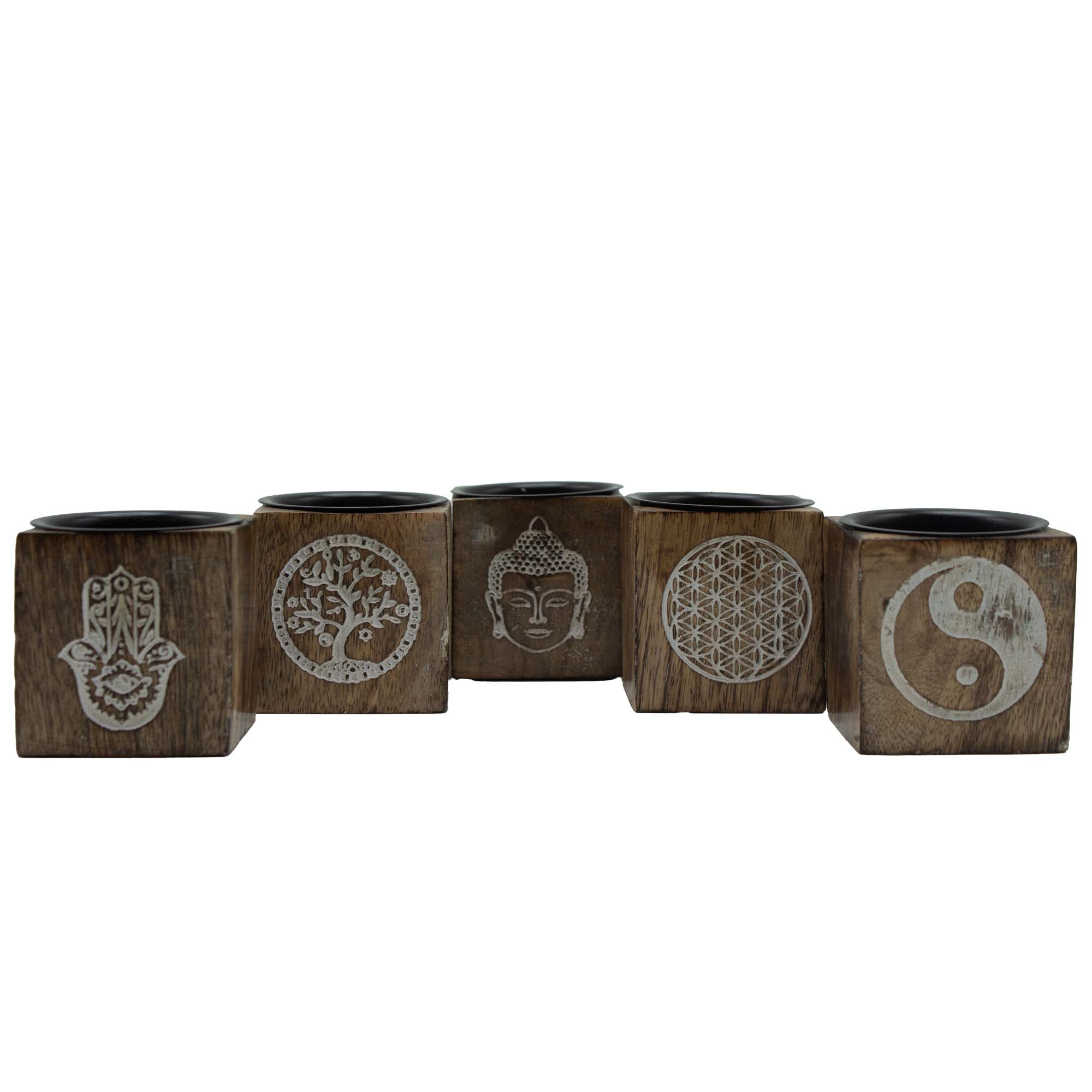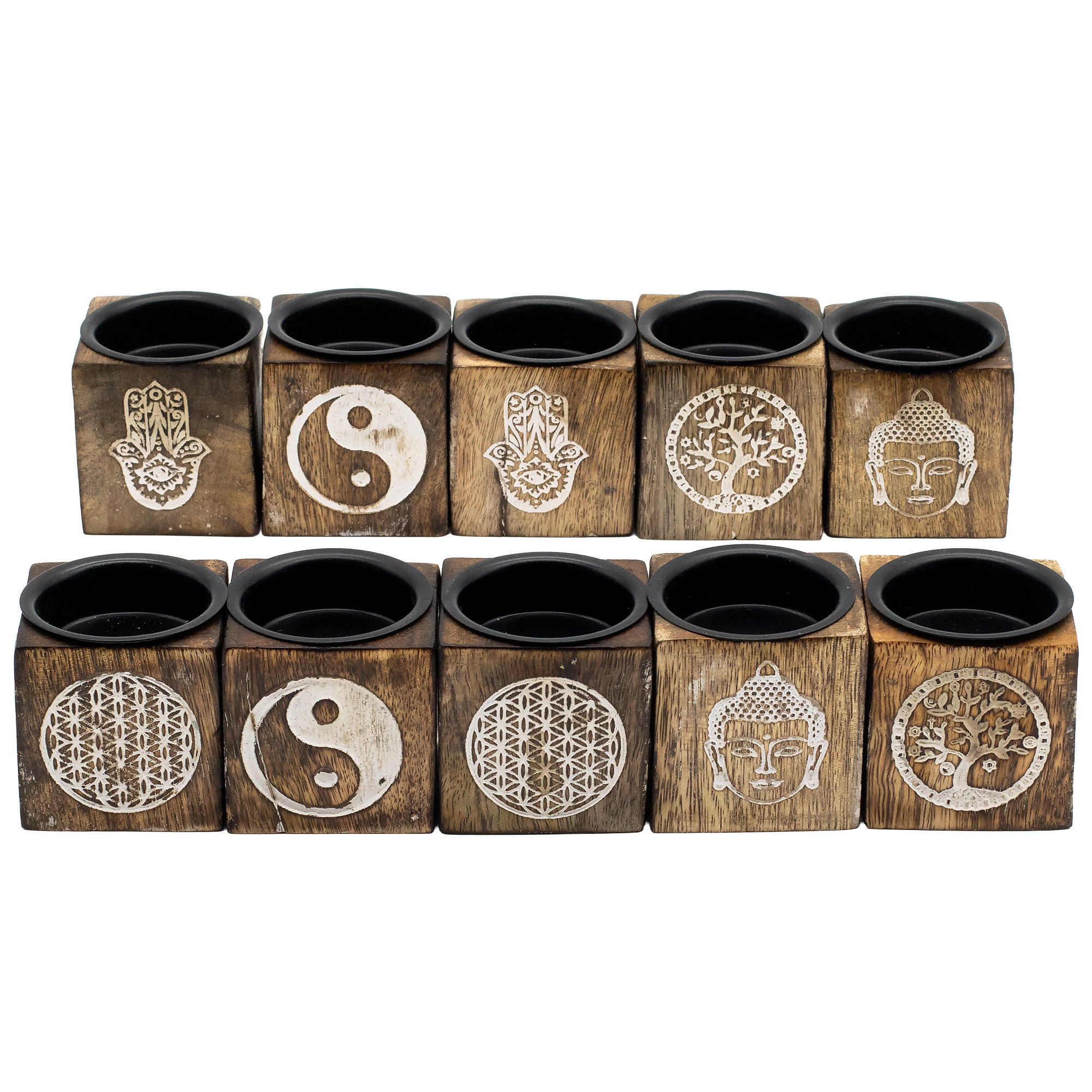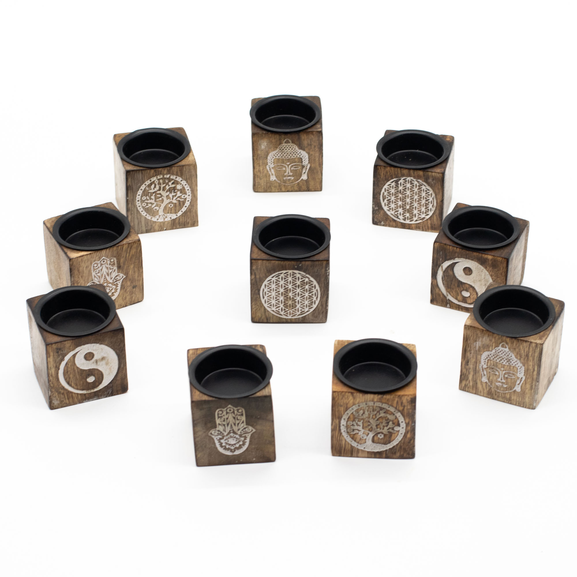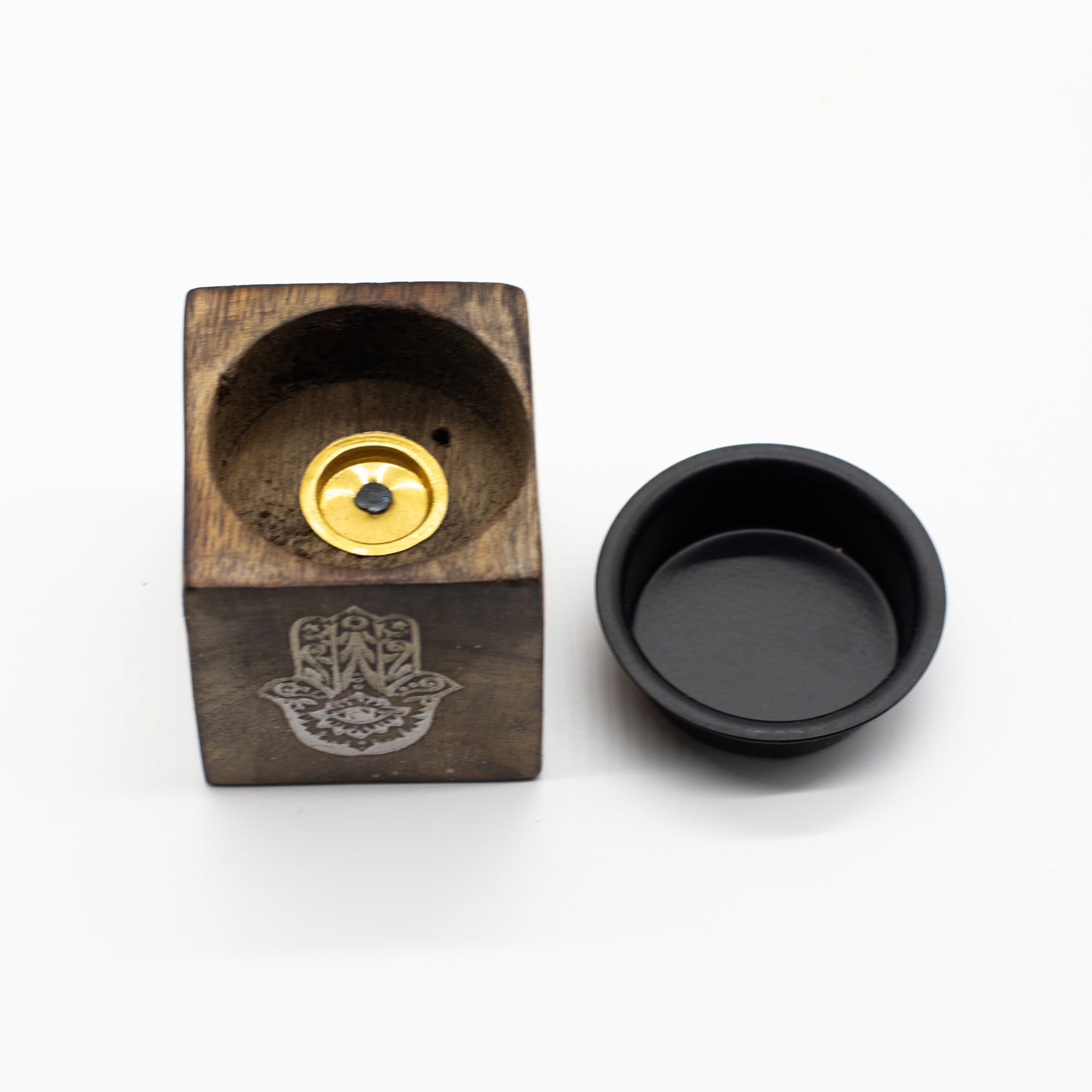 Ez a kocka formájú állvány letisztult, mégis karakteres megjelenésével jól illeszkedik a dekorációs és ajándékjellegű kínálatba. A sötétebb tónusú fa felületet finoman kidolgozott, keleti stílusú minta díszíti, amely egyedi megjelenést biztosít anélkül, hogy túl hangsúlyos lenne.