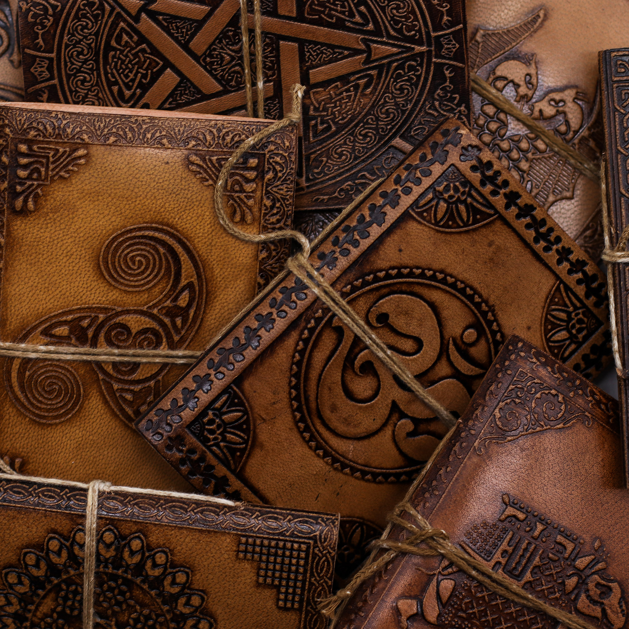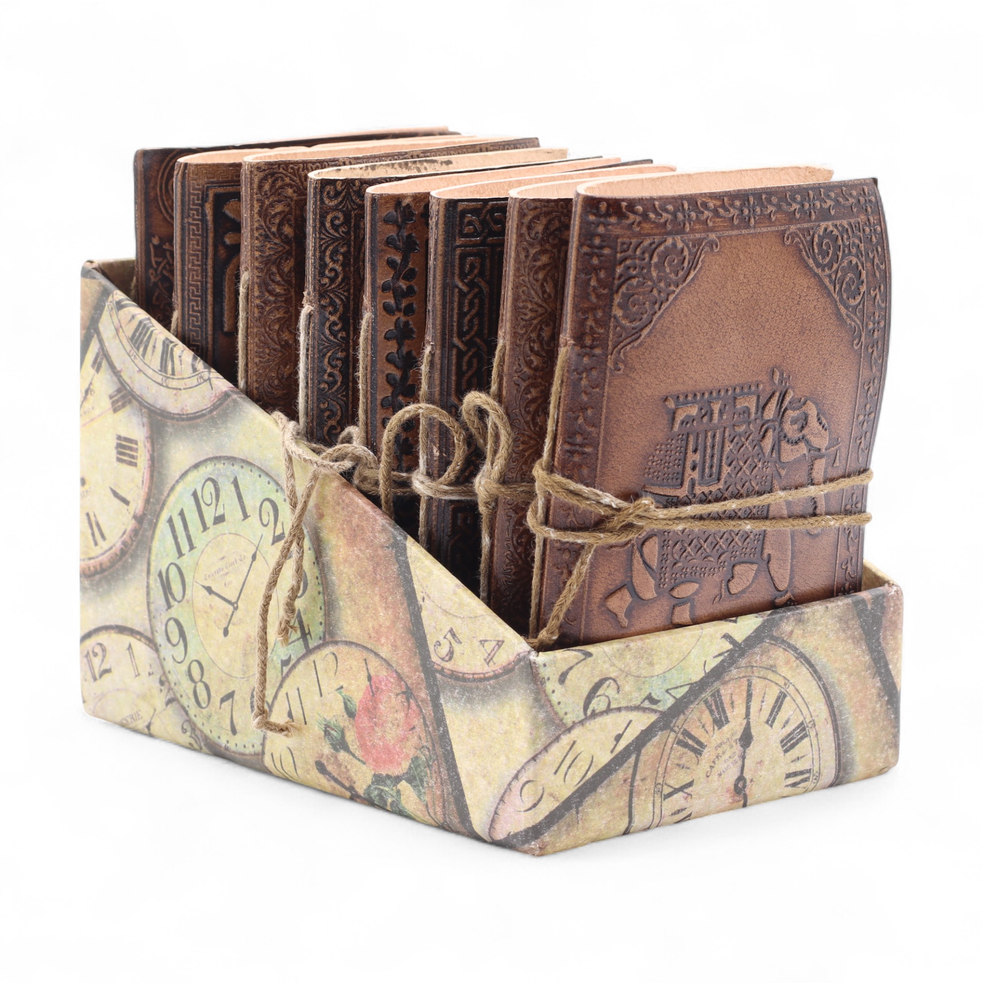 Ez a szett nyolc darab, kézzel készített közepes méretű bőrkötésű naplót tartalmaz különféle mintázattal és díszítéssel. A bőrborítás klasszikus, természetes megjelenést biztosít, míg a vegyes minták egyedi karaktert adnak minden darabnak.