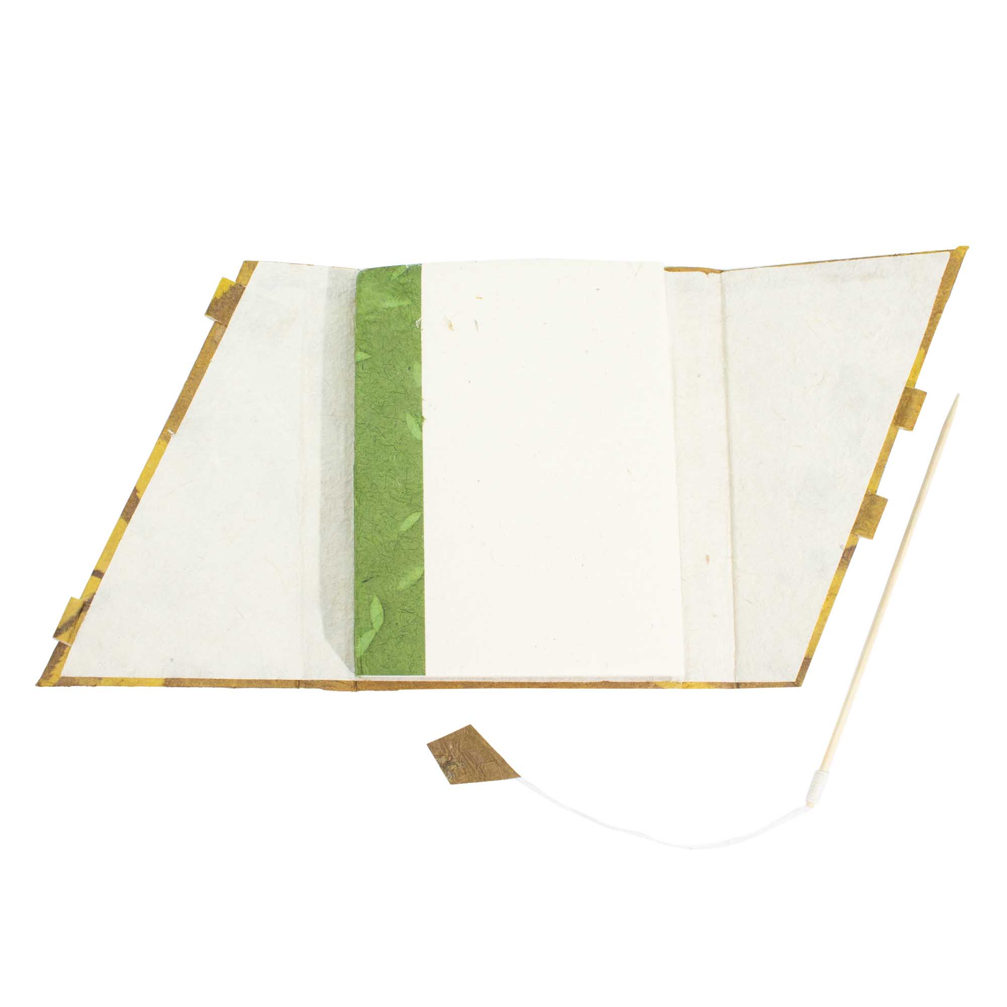 A Közepes Barna Lokta Papír Napló bambusz zárással meleg, földszínű árnyalataival és természetes megjelenésével nyugodt, időtálló hangulatot közvetít. Nepálban, hagyományos technikával készült lokta papírból, amelynek kézműves textúrája és visszafogott mintázata különleges karaktert ad minden darabnak. Ideális választás jegyzeteléshez, gondolatok rögzítéséhez vagy kreatív feljegyzésekhez.