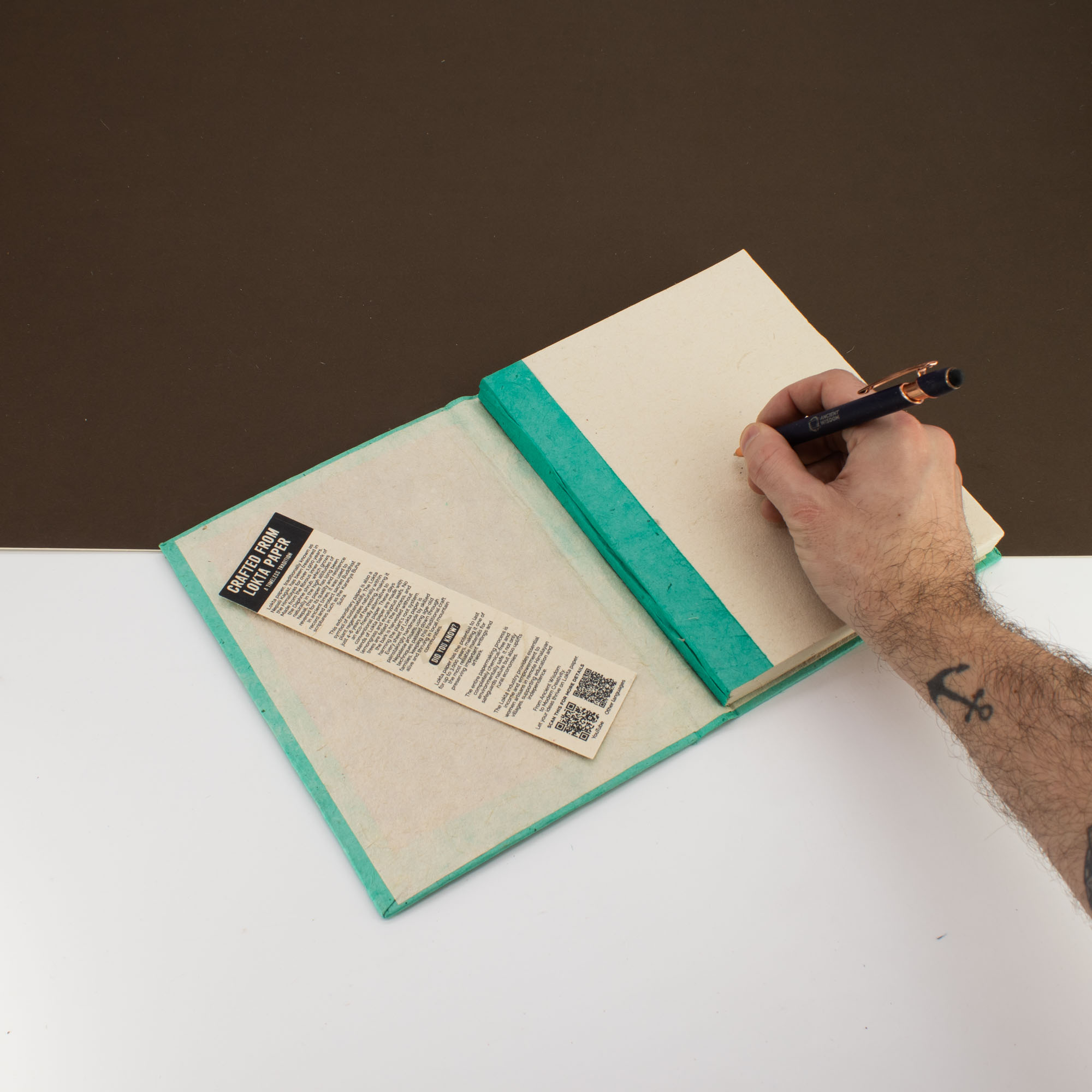 Ez a fair trade napló egyszerre kreatív és praktikus darab, amely teret ad az ötleteknek, jegyzeteknek vagy vizuális gondolatoknak – minden példány enyhén eltérő, így valóban egyedi.