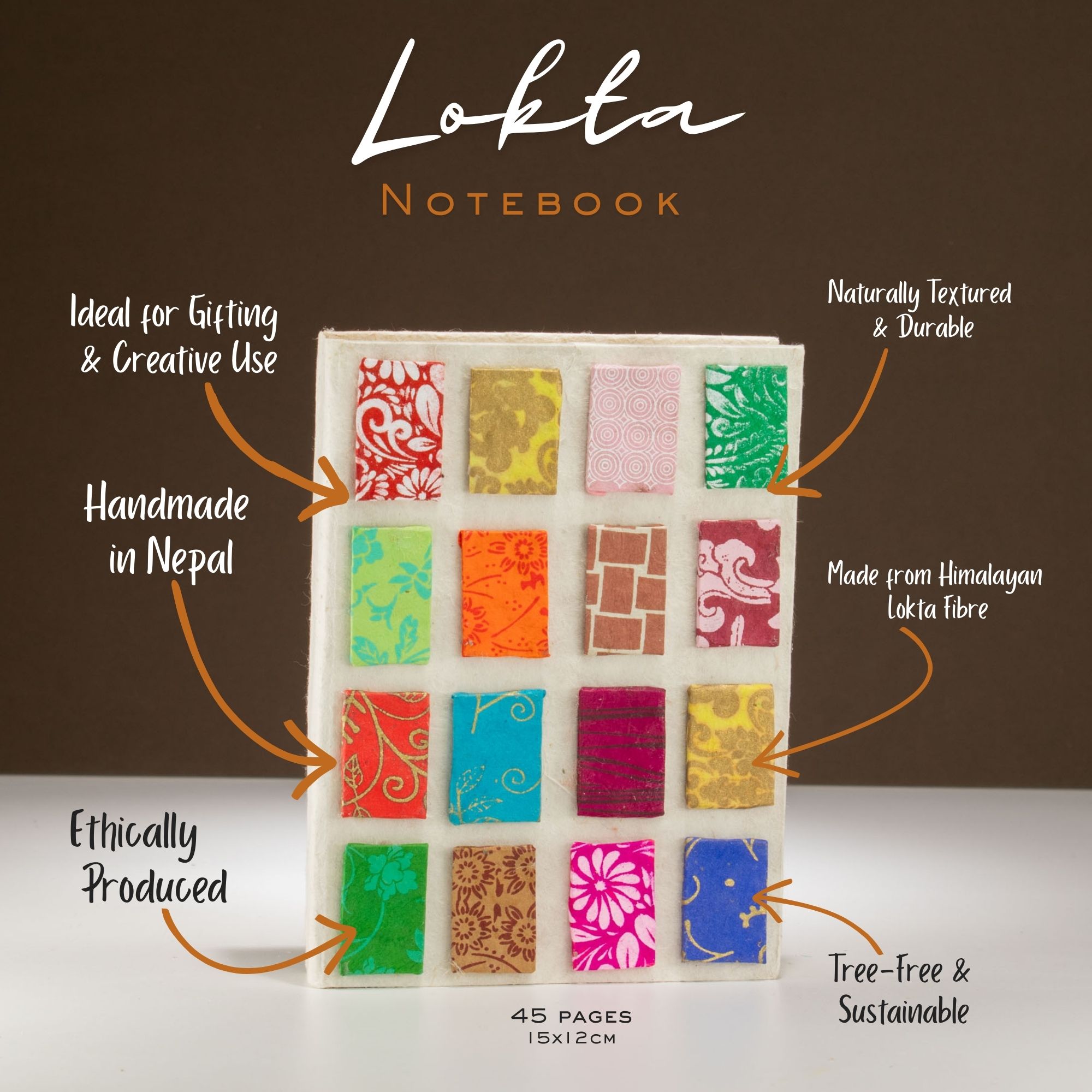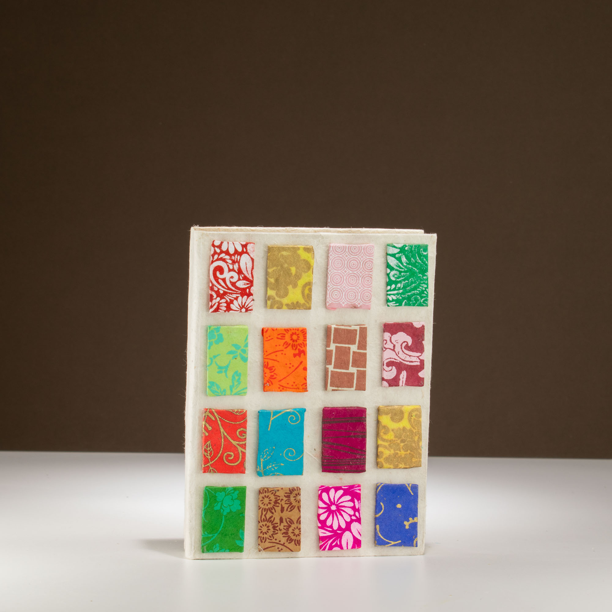 A Közepes Csempés Lokta Papír Napló játékos, mozaikszerű mintázatával friss és kreatív hangulatot teremt. A különálló, színes motívumok harmonikus elrendezése modern, mégis kézműves megjelenést ad a naplónak. Nepálban, hagyományos technikával készült lokta papírból, amely természetes textúrájával és egyedi karakterével azonnal megkülönbözteti a tömegtermékektől. Ideális választás jegyzeteléshez, ötletek rögzítéséhez vagy kreatív feljegyzésekhez.