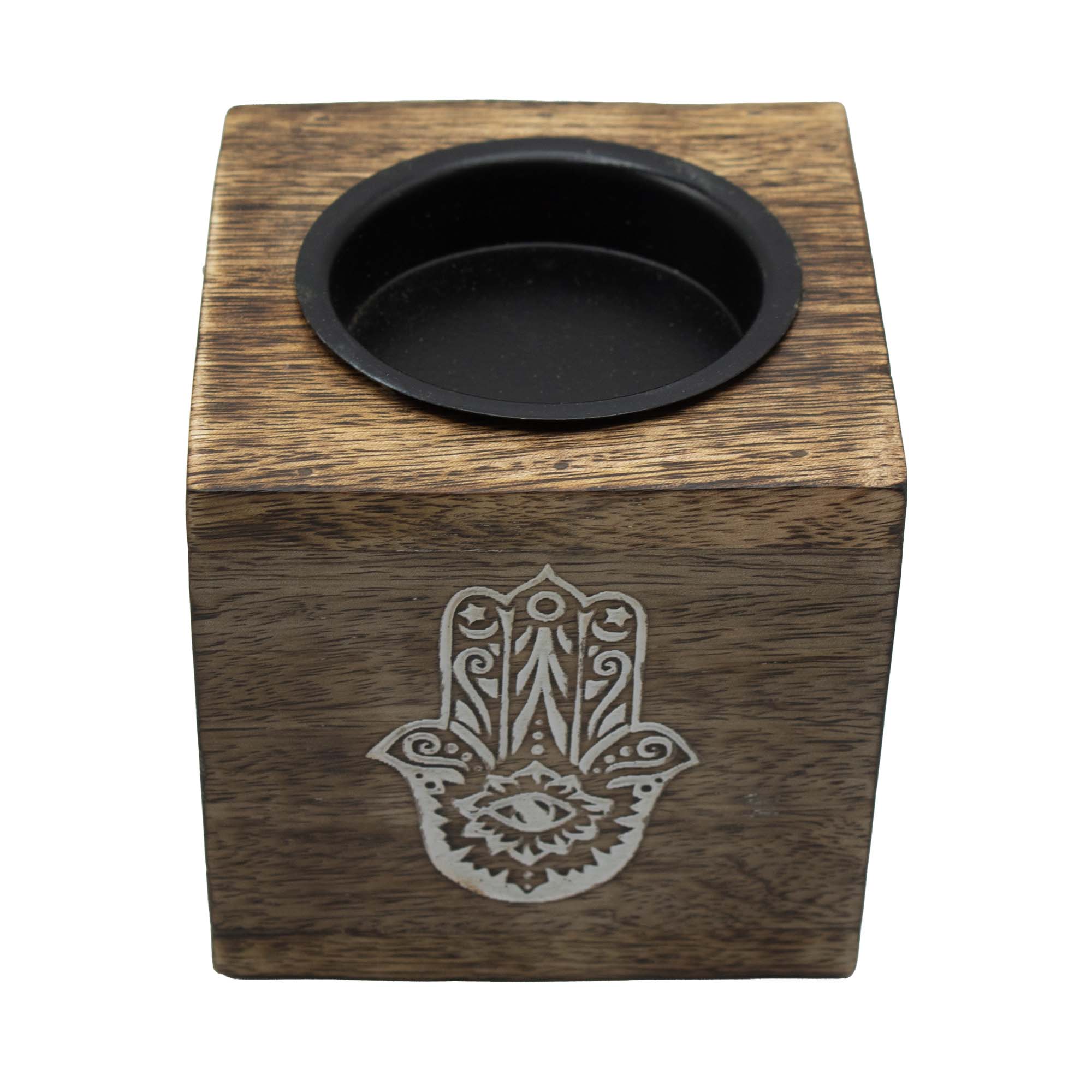 Ez a négyzetes formájú, mangófából készült aromalámpa letisztult megjelenésével és finoman kidolgozott Hamsa motívumával elegáns, mégis karakteres kiegészítője lehet bármely otthonnak. Természetes faanyagának meleg tónusai és a precíz megmunkálás harmonikus összhatást teremtenek, amely egyszerre dekoratív és időtálló.