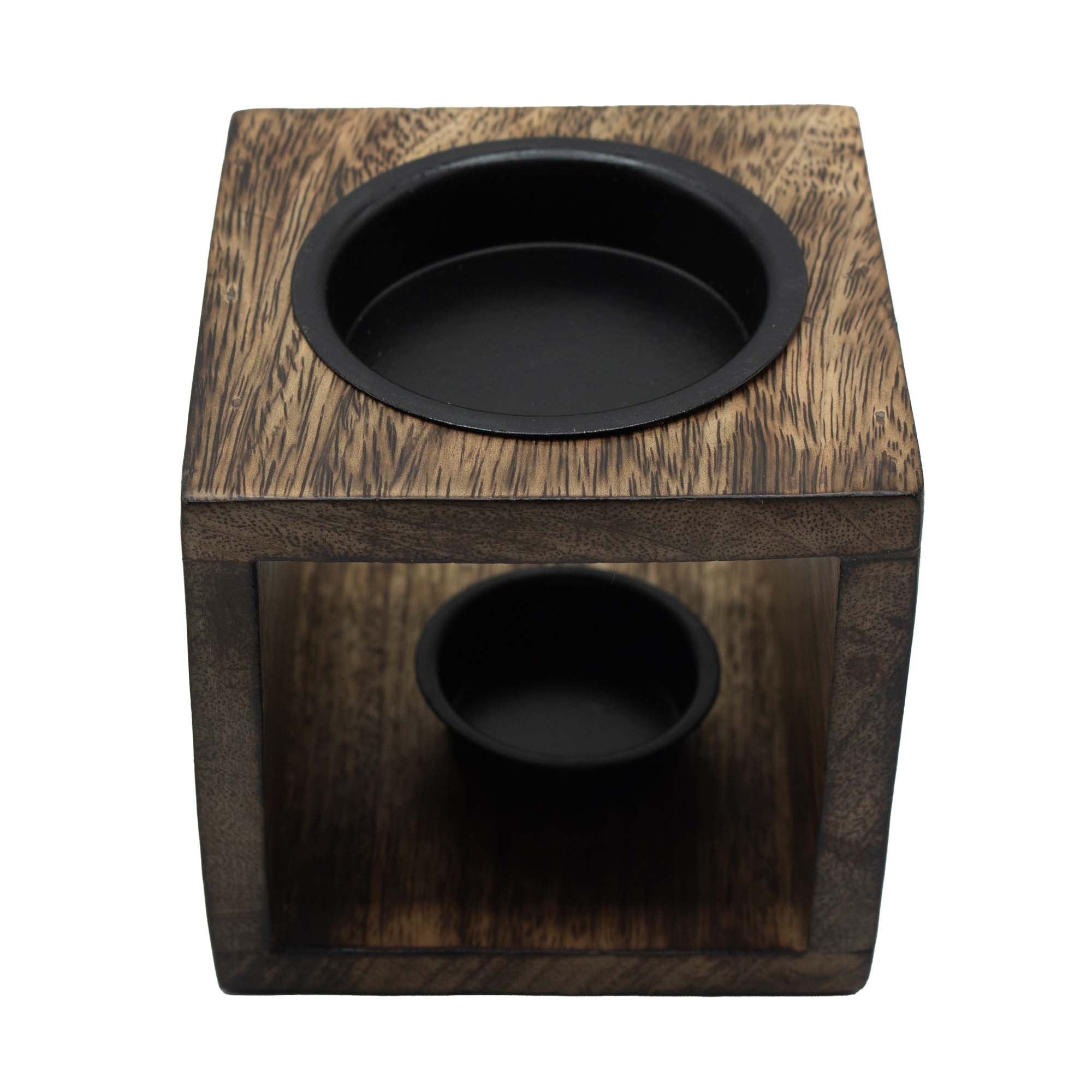 A felső részen kialakított tálka ideális illóolajok vagy illatviaszok használatához. A belső térben elhelyezett mécses melege egyenletesen segíti az illatok kibontakozását, miközben kellemes, lágy fényt ad a környezetnek. Használata egyszerű és praktikus, így a mindennapok részeként könnyedén beilleszthető a lakás hangulatába.