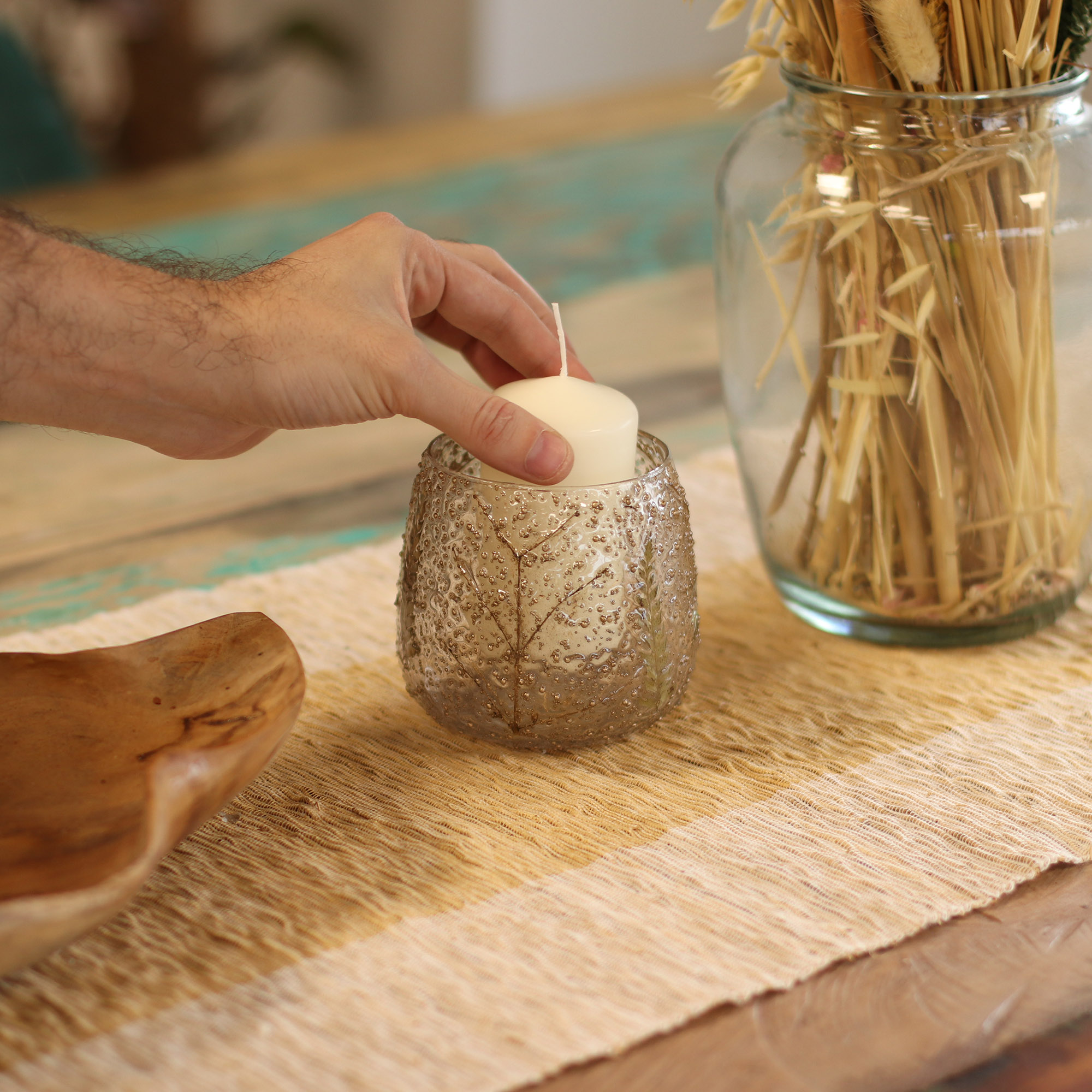 A Pino kerekített gyertyatartó a természet letisztult, erdei hangulatát hozza közel, amely különösen népszerű a békés, skandináv és rusztikus stílus kedvelői körében. A gyertyatartó oldalába zárt valódi növények hangsúlyos, karakteres elemet adnak a dizájnnak, amely egyedivé teszi a terméket. A halvány, havas hatású texturált üvegfelület még inkább felerősíti ezt a természetes, télies, friss hangulatot – így a Pino kollekció kiválóan illeszkedik egész éves, de különösen téli és ünnepi dekorációkhoz.