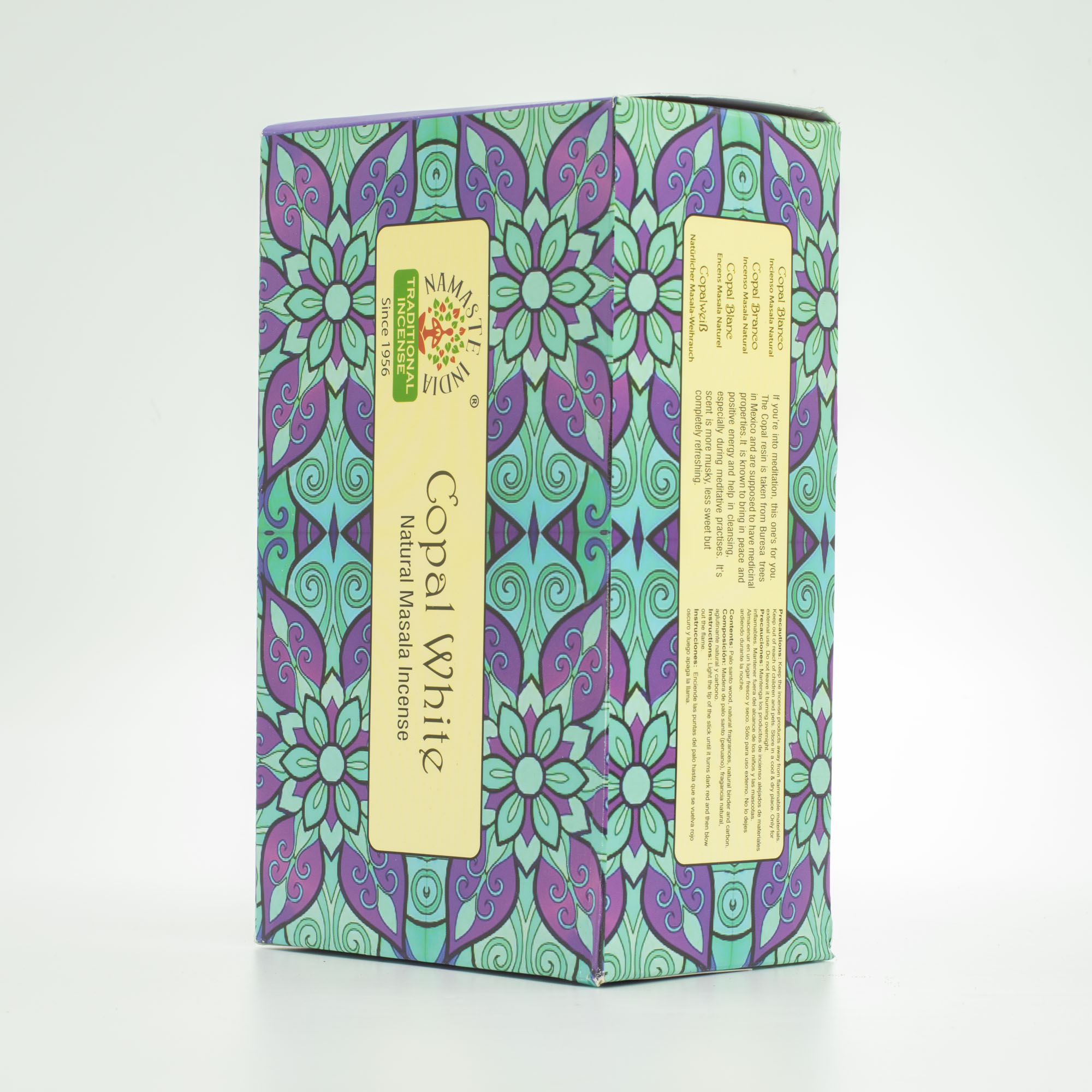 A Fehér Kopál illatú Namaste Mandala Masala Füstölő gyantás, telt és karakteres aromát kínál. A masala eljárással készült pálcák egyenletes égést és hosszan tartó illatkibocsátást biztosítanak, így stabil minőséget képviselnek a kategóriában.