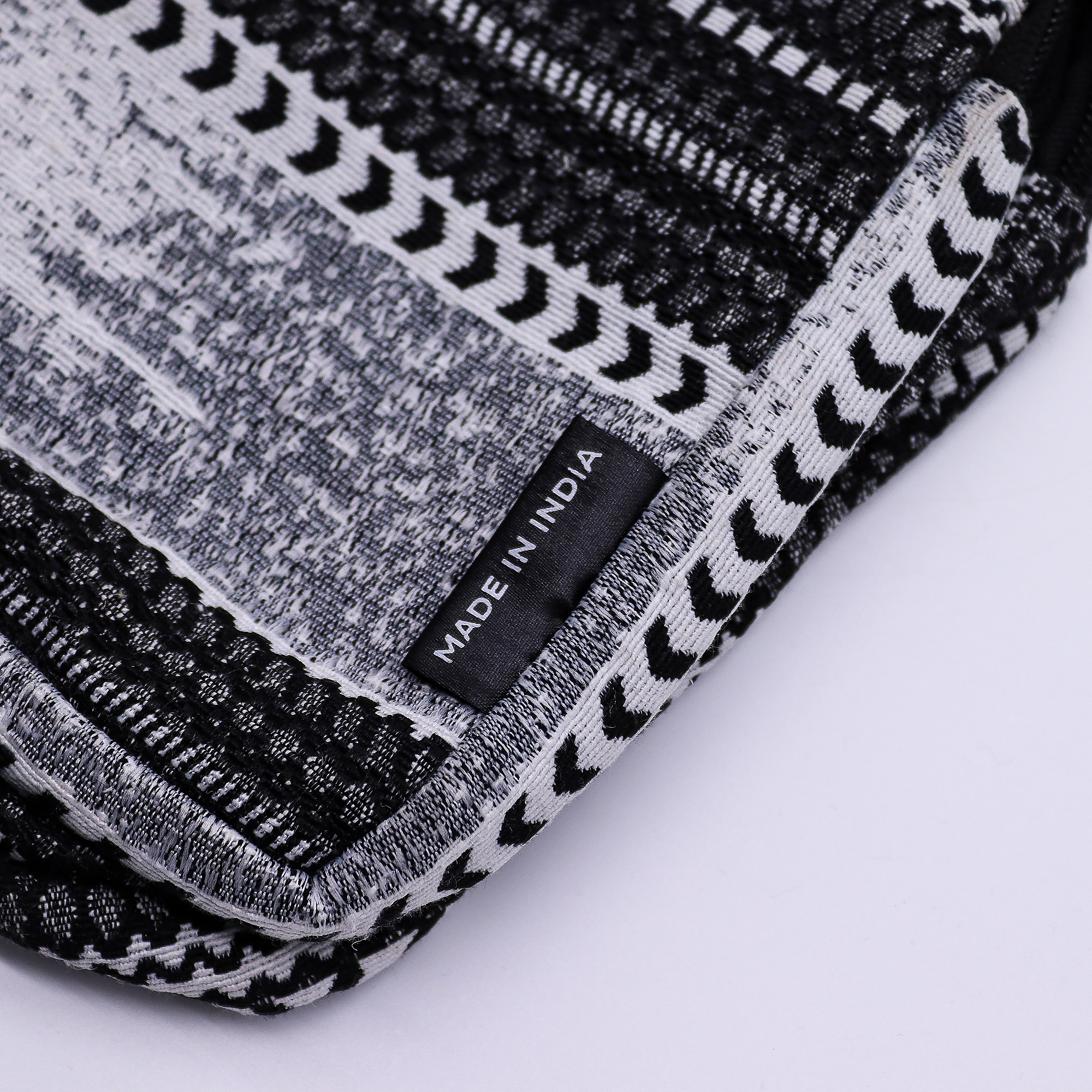 Modern, mégis időtálló darab, amely a városi lendületet ötvözi a kézműves hagyományokkal. A fekete–szürke, részletgazdag jacquard mintázat karakteres megjelenést ad, miközben könnyedén kombinálható a mindennapi öltözékkel.