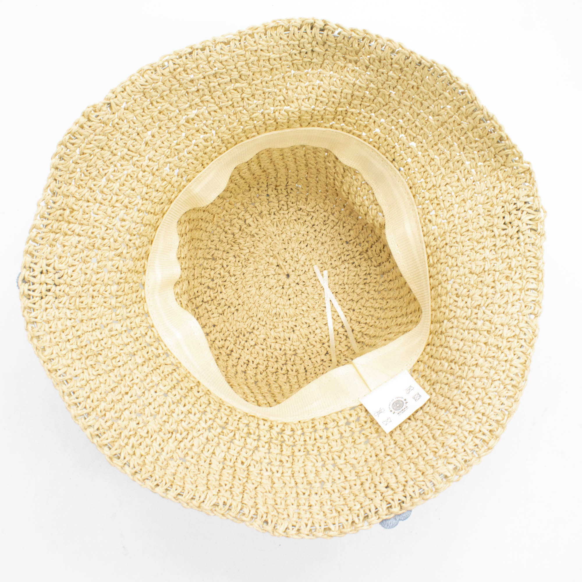 Ez a laza szövésű szalmakalap finom, virágos díszítésével különleges és nőies hangulatot hoz a nyári kiegészítők kollekciójába. A természetes színű alapot apró, világoskék virágmotívumok díszítik, amelyek friss, könnyed megjelenést adnak a klasszikus fazonnak.