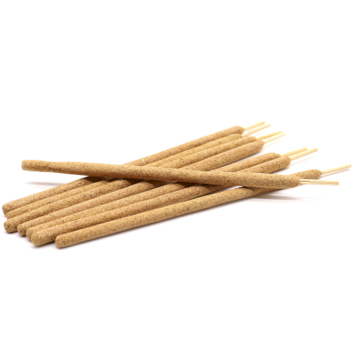 100 db nagy Palo Santo füstölőpálcika - ezeket a füstölőket Peruban kézzel sodorják, és Palo Santóból készülnek. Méretük 20 cm, szélességük 1 cm, égési idejük körülbelül 75 perc.