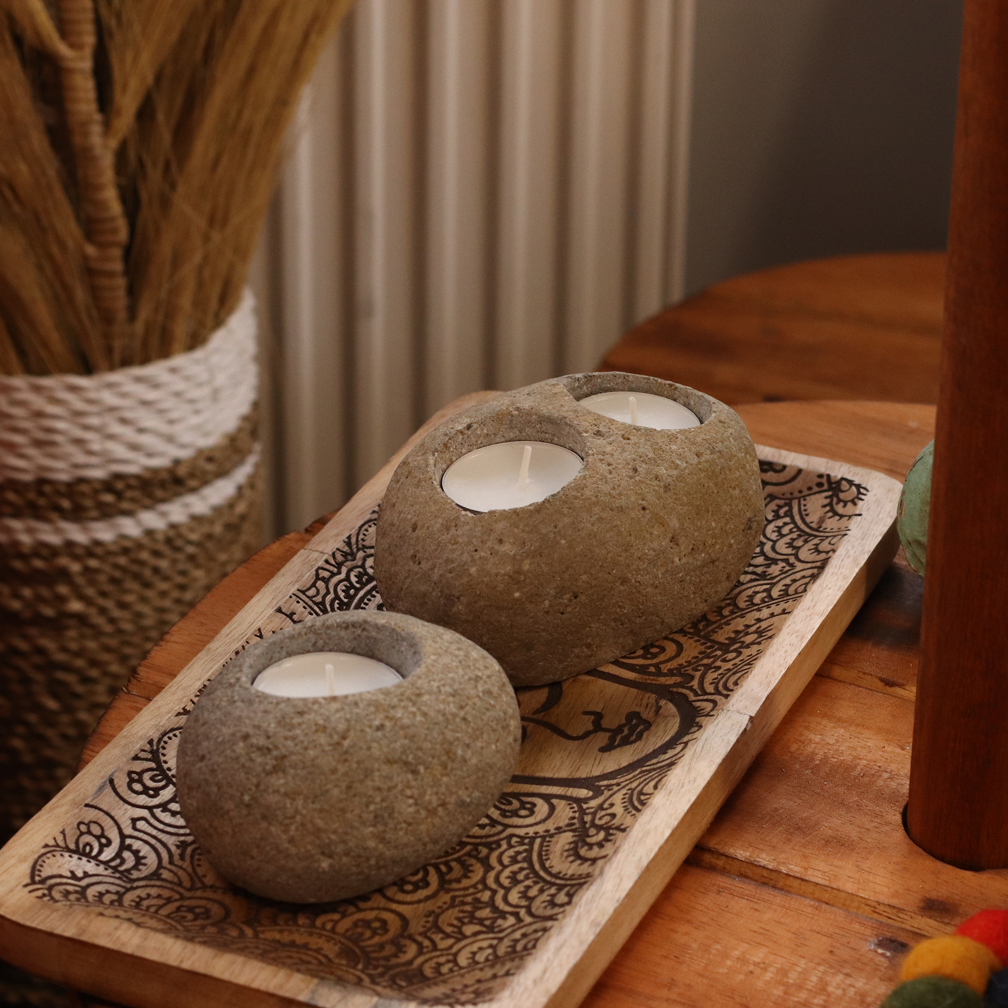 A természetes kő anyaga hűvös tapintású, tartós és időtálló. A folyókő gyertyatartók letisztult formájuknak köszönhetően bármilyen enteriőrbe könnyedén illeszkednek.