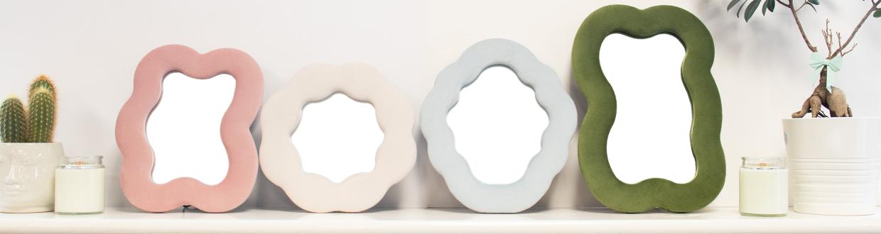 A Hullámos tükrök kollekció különleges, organikus formáival azonnal magára vonja a figyelmet. A felhő, kavics, csillag, virág és absztrakt sziluettek trendi, mégis időtálló megjelenést biztosítanak, így ideális választások lakberendezési, ajándék- és design fókuszú üzletek számára.