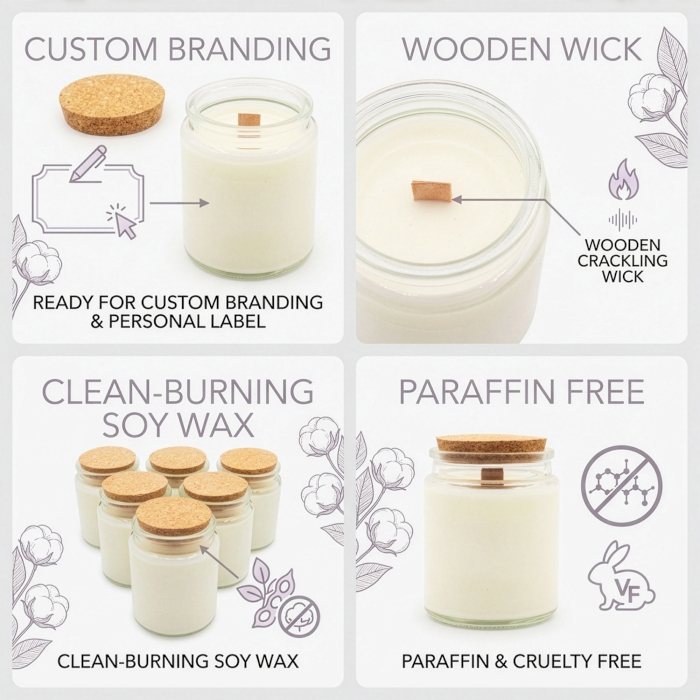 Soywax, Woodwick, Glass Jar, Cork, Paper
