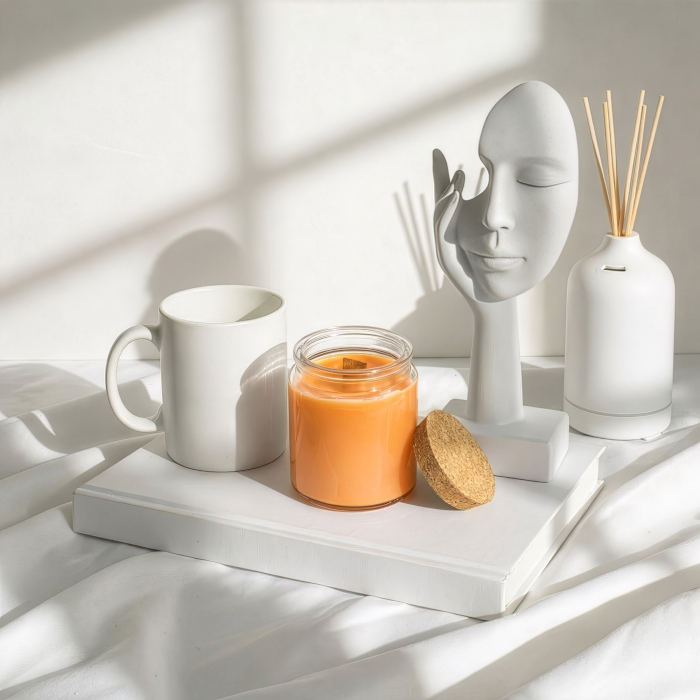 A „Citrushéj” illatú, címke nélküli szójagyertyák friss és energikus karaktert visznek a lakásillatosító kínálatba, ideális választást nyújtva azoknak a kiskereskedőknek, akik saját márkás termékcsaládot szeretnének kialakítani. A letisztult üvegtégely és a természetes parafa fedő modern, természetes megjelenést biztosít, amely könnyen illeszthető különböző üzleti koncepciókhoz.