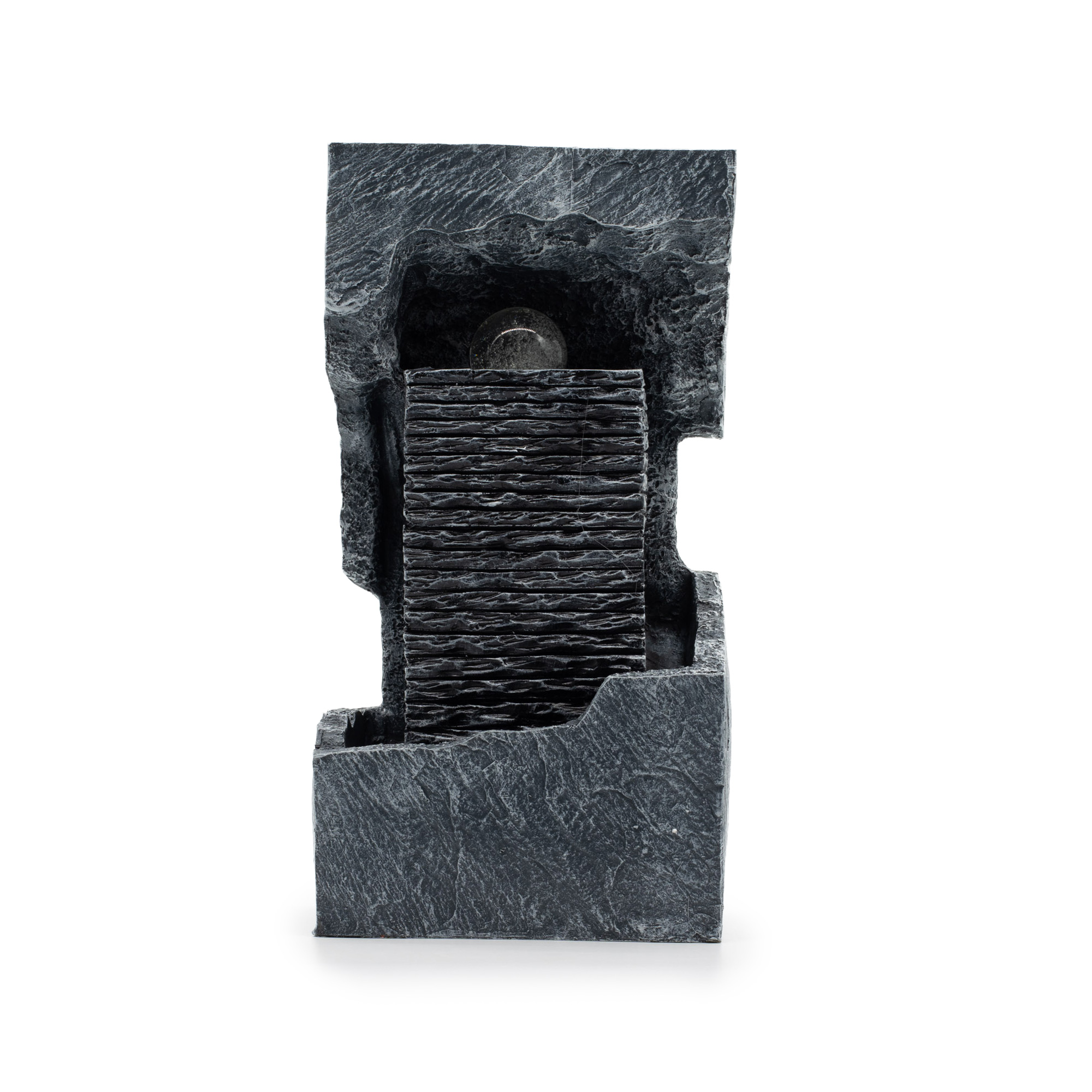 Ez a nagy méretű beltéri szoba szökőkút színváltós kristálygolyóval modern, letisztult megjelenésű dekorációs elem. A víz a strukturált felületen áramlik lefelé, majd a kristálygolyón keresztül visszakerül a tartályba, folyamatos vízkeringést biztosítva.