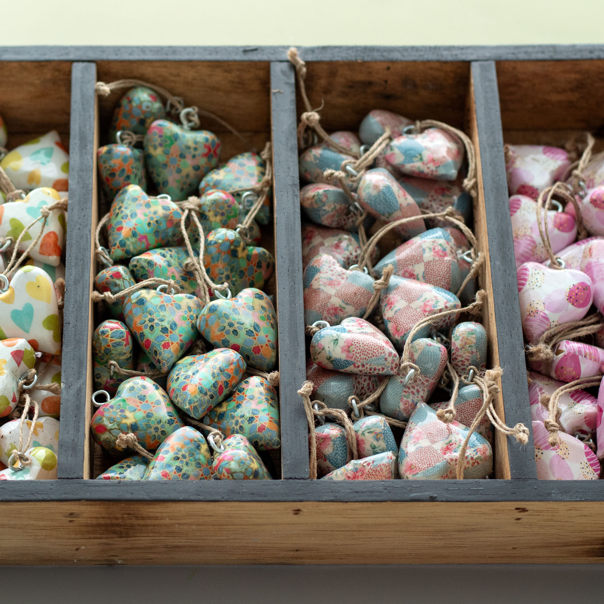 Csak egy kattintásnyira van attól, hogy hozzáadja ezeket a fa szív díszeket a készletéhez, kiegészítve egy INGYENES kijelzőtálcával.